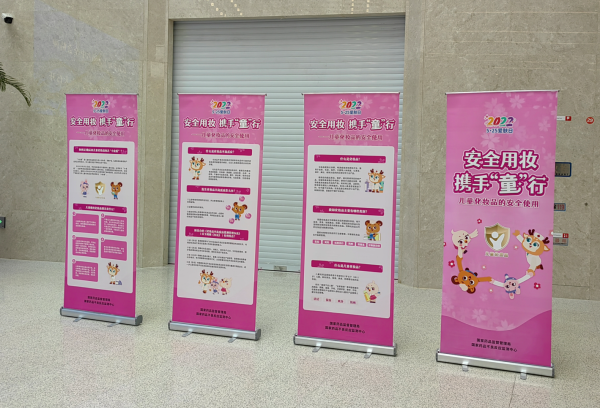 宣传活动围绕“安全用妆,携手’童’行”主题,在政务服务大厅大屏循环播放“合理使用儿童化妆品,共同守护儿童用妆安全”系列儿童化妆品安全使用知识的宣传视频,并制作了展板将儿童化妆品相关的基本知识、常见问题及解答在大厅进行集中展示,普及儿童化妆品安全使用知识。