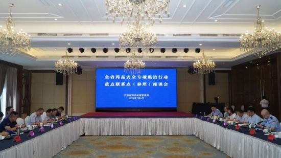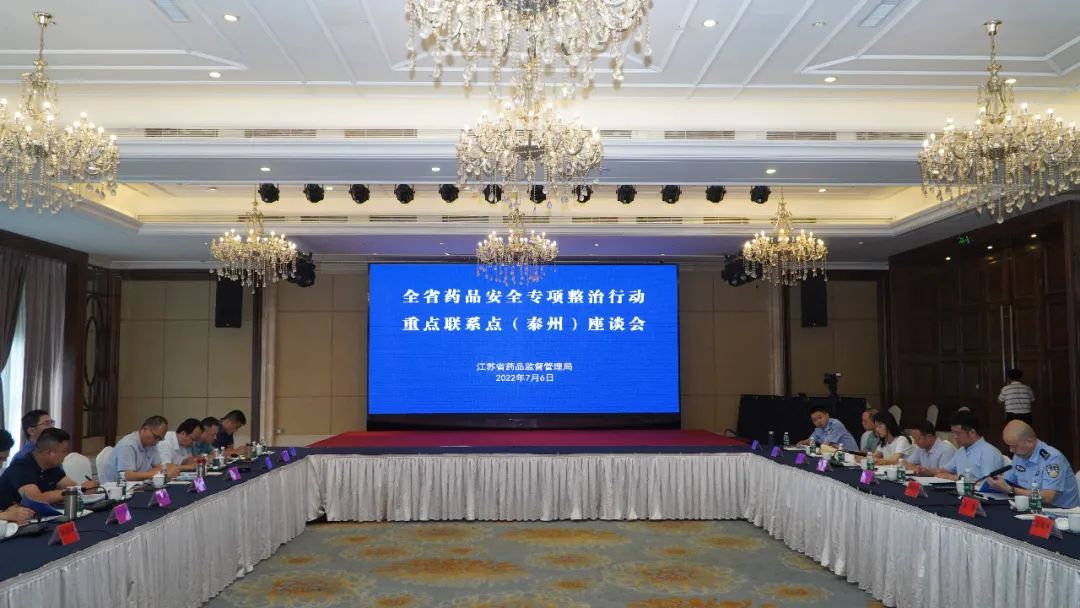 针对下一阶段专项整治工作,陈和平强调,泰州市、姜堰区作为国家局和省局深入开展药品安全专项整治行动的重点联系点,要按照国家和省关于深入开展药品安全专项整治行动的部署要求,全力以赴打好专项整治攻坚战,为党的二十大胜利召开营造良好的药品安全环境。一是要提高政治站位,进一步压实工作责任。要切实把思想认识统一到习近平总书记关于药品安全的重要指示批示精神上来,把专项整治行动作为“一把手”工程贯穿全年始终,层层传导压力、层层压实责任,确保专项整治行动各项工作任务落实落细落地。二是要加强协调联动,进一步凝聚工作合力。要强化系统内部联动,完善“监、检、稽”衔接,从源头上防范风险隐患;要强化部门横向协同,加强与公安、卫生健康、医保、网信等部门的协作,完善行刑衔接,主动与公安机关密切合作,联合挂牌督办重大违法犯罪案件,增强监管工作的协调性和威慑力。三是要加强新闻宣传,进一步强化社会共治。要加强药品安全科普宣传,大力宣传专项整治得力举措、特色亮点和显著成效,统一扎口案件信息发布,提前做好舆情监测,防范社会负面舆情影响;畅通投诉举报渠道,完善举报奖励发放程序,鼓励群众积极主动参与药品安全治理。四是要加强能力建设,进一步夯实监管基础。要以专项整治行动为契机,按照“强基础、补短板、破瓶颈、促提升”的要求,将开展专项整治行动与贯彻落实我省出台的《关于全面加强药品监管能力建设若干措施》相结合,创新机制、优化结构,全面提升药品安全综合治理能力和保障水平。五是要提升服务能力,进一步促进高质量发展。要认真贯彻落实党中央“疫情要防住、经济要稳住、发展要安全”要求,把专项整治放到“稳经济增长、保市场主体”的大局中谋划,统筹“严守药品安全底线”和“促进医药产业高质量发展”,实现“保安全”与“促发展”同发力、双突破、共提升。