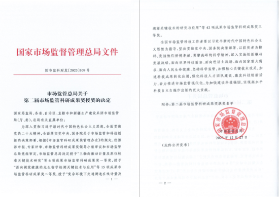 | 喜报!省食品药品监督检验研究院再获国家市场监管总局市场监管科研成果奖 | |